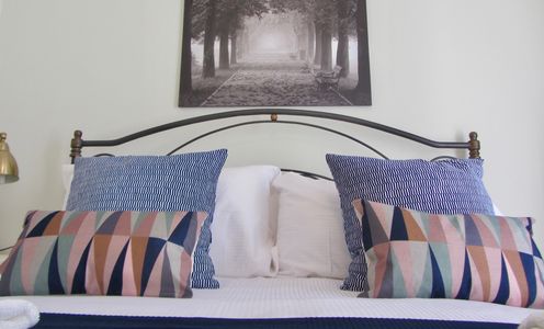 Second Bedroom "DUE' also with elaborate king sized bedframe and selection of different cushions.