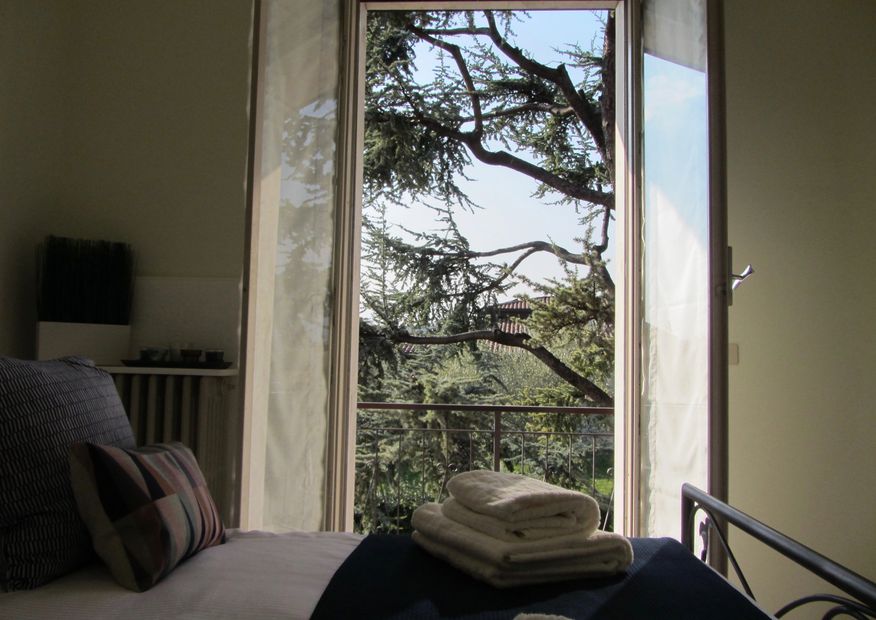 Bedroom 'UNO" with direct views out into the garden and its own terrace.